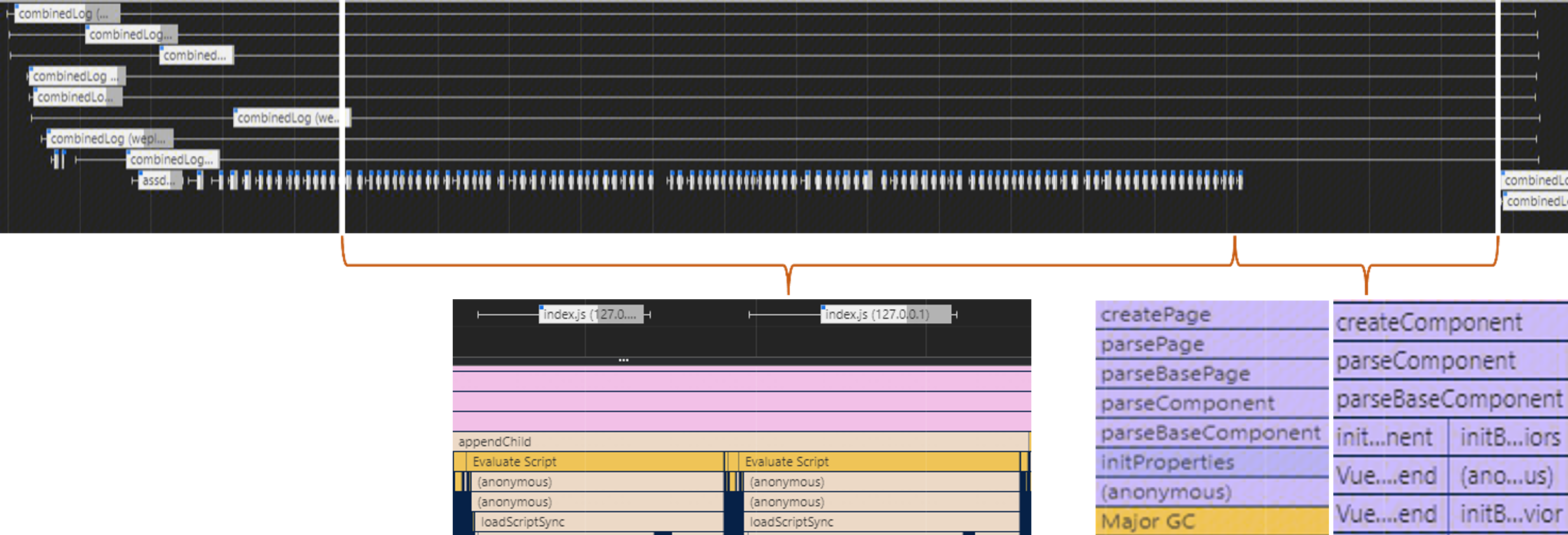 通过火焰图进行观测,发现由两部分组成: