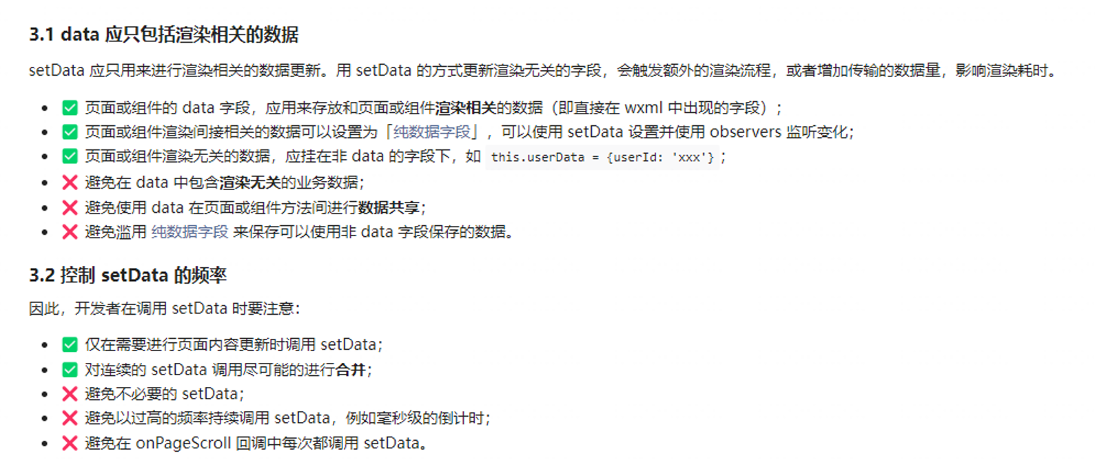根据开发者文档给予的关于setData的建议:
